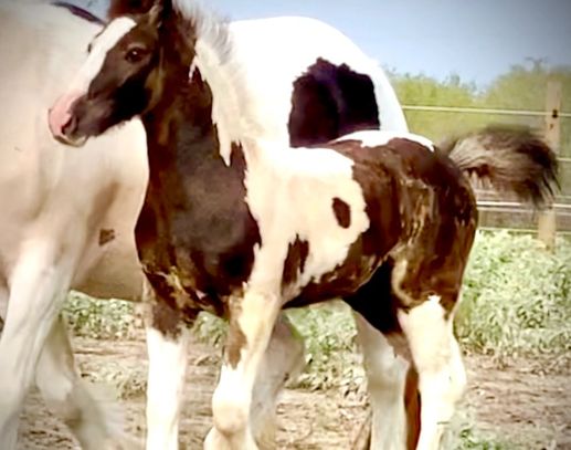 will be registered with the Gypsian registry but could also be registered by new owner with GHRA and a part-bred, FHH, barock pinto, and pinto.