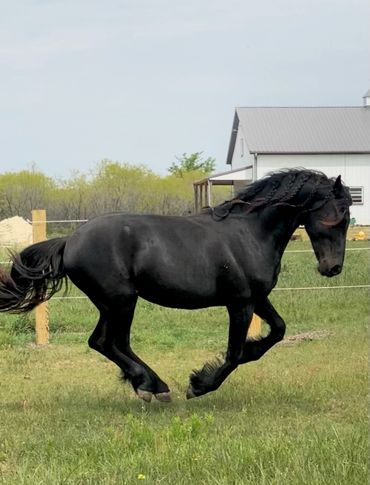 Our gorgeous homebred Friesian Sporthorse stud and he is extraordinary! He decided to make his appearance in the middle of a party, stood, arched his neck and passaged around his stall. He is extremely handsome, intelligent, friendly and athletic. Keep your eye on this boy...